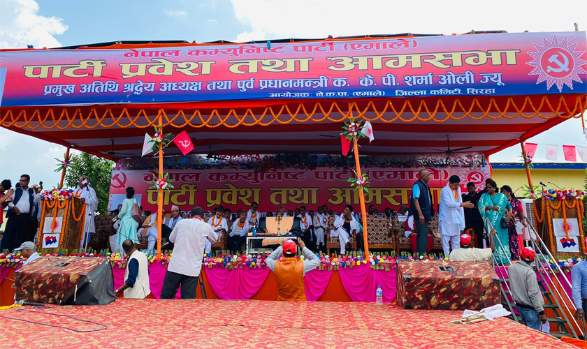 सिरहा, ३१ भदौ । मधेस प्रदेशको सिरहा जिल्लामा नेकपा एमालेले विद्यालयको पठनपाठन ठप्प गरेर पार्टी प्रवेश कार्यक्रमको आयोजना गरिएको छ ।