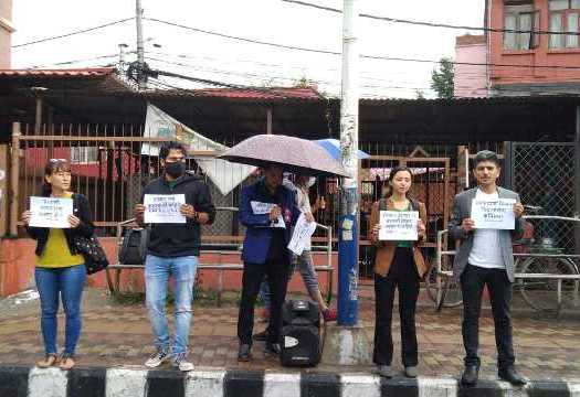 केसीको सत्याग्रहमा ऐक्यबद्धता जनाउँदै काठमाडौंको माइतीघर मण्डलामा प्रदर्शन गरिएको हो ।
