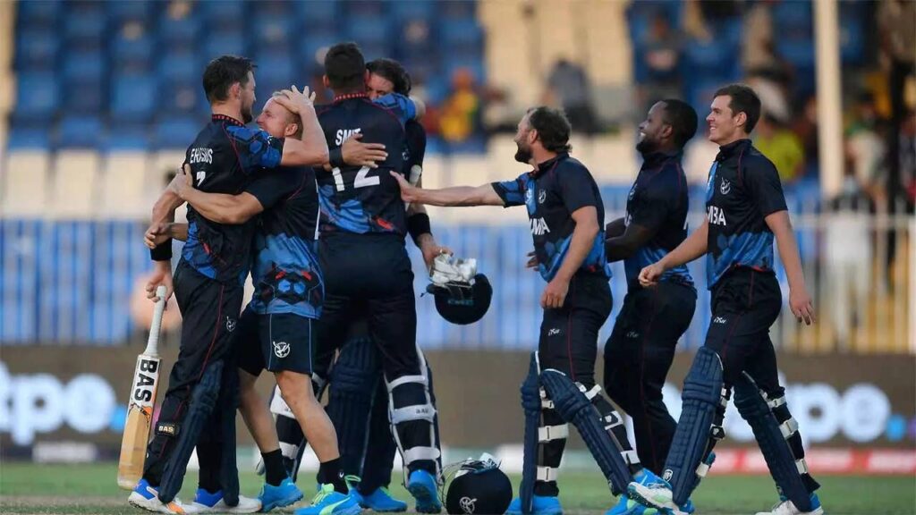 नामिवियाका लागि बर्नार्ड स्कोल्ट्जले तीन, टांगोनी नुङ्गाम्यानले दुई तथा रुवेन ट्रम्पलम्यान र कप्तान गर्हार्ड इरास्मसले एक/एक विकेट लिए ।