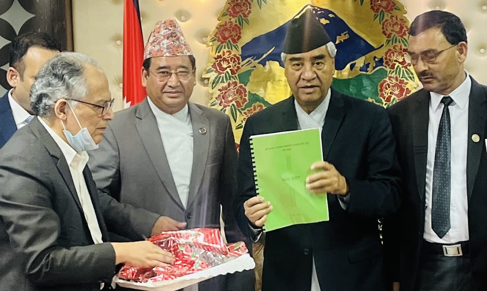 संस्कृति, पर्यटन तथा नागरिक उड्डयनमन्त्री जीवनराम श्रेष्ठको उपस्थितिमा विज्ञ समूहका संयोजक वीरेन्द्रबहादुर देउजाले प्रधानमन्त्री देउवालाई अध्ययन प्रतिवेदन हस्तान्तरण गरे । सर्वोच्च अदालतको फैसलाअनुसार पूर्ण क्षमताको अन्तर्राष्ट्रिय विमानस्थल निर्माणको लागि अध्ययन गरी प्रतिवेदन पेस गर्न मन्त्रिपरिषद्को गत साउन २६ गतेको निर्णयअनुसार विज्ञ समूह गठन भएको थियो ।