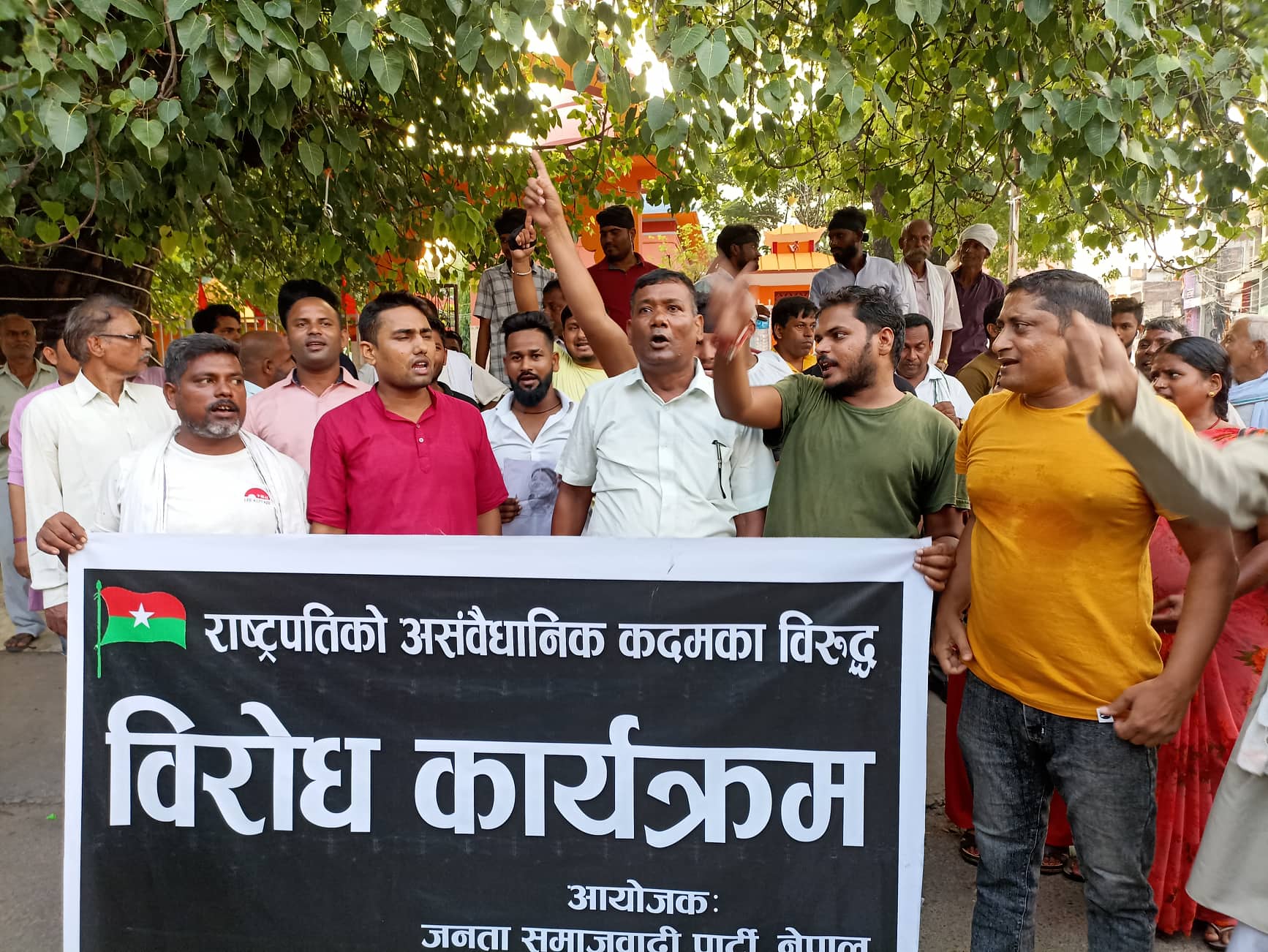 जसपाका नगर अध्यक्ष विष्णुदेव साहले राष्ट्रपतिको असंवैधानिक कदमकाविरुद्ध आफूहरूले विरोध प्रदर्शन गरेको बताए । उनले राष्ट्रपति भण्डारीले संविधानलाई अवज्ञा गरेकाले बाध्य भएर आन्दोलनमा उत्रिनु परेको बताए ।