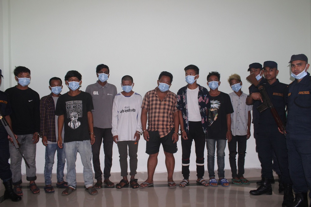 चुलाचुली–४ इलामका २५ बर्षीय शिब हिङहाङ भन्ने नरेन्द्र दर्जी, २९ वर्षीय झ्याम्ले भन्ने नरेशकुमार याखा, २१ वर्षीय अभिषेक केरुङ, २० वर्षीय सेसे भन्ने सेसेयाङ याखा, ३३ वर्षीय सन्तु भन्ने चन्द्रकुमार यवा, ३५ वर्षीय डम्बर यवा, ३० वर्षीय टीका भन्ने नरेन्द्र तुम्रोक, २६ वर्षीय विक्रम हिङमाङ र २९ वर्षीय पर्शु राई समेत ९ जनालाई विभिन्न स्थानमा लुकीछिपी बसेको अवस्थामा पक्राउ गरिएको हो ।