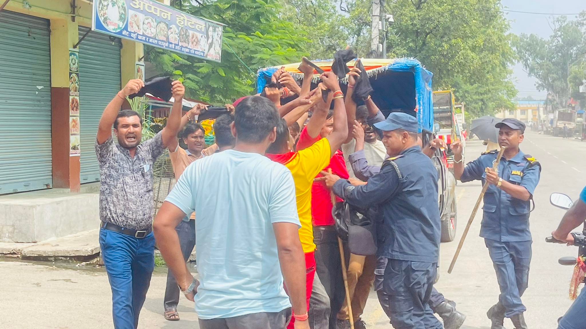 एमाले अध्यक्ष ओलीलाई जनकपुरधाममा युवाहरुले देखाए कालो झण्डा