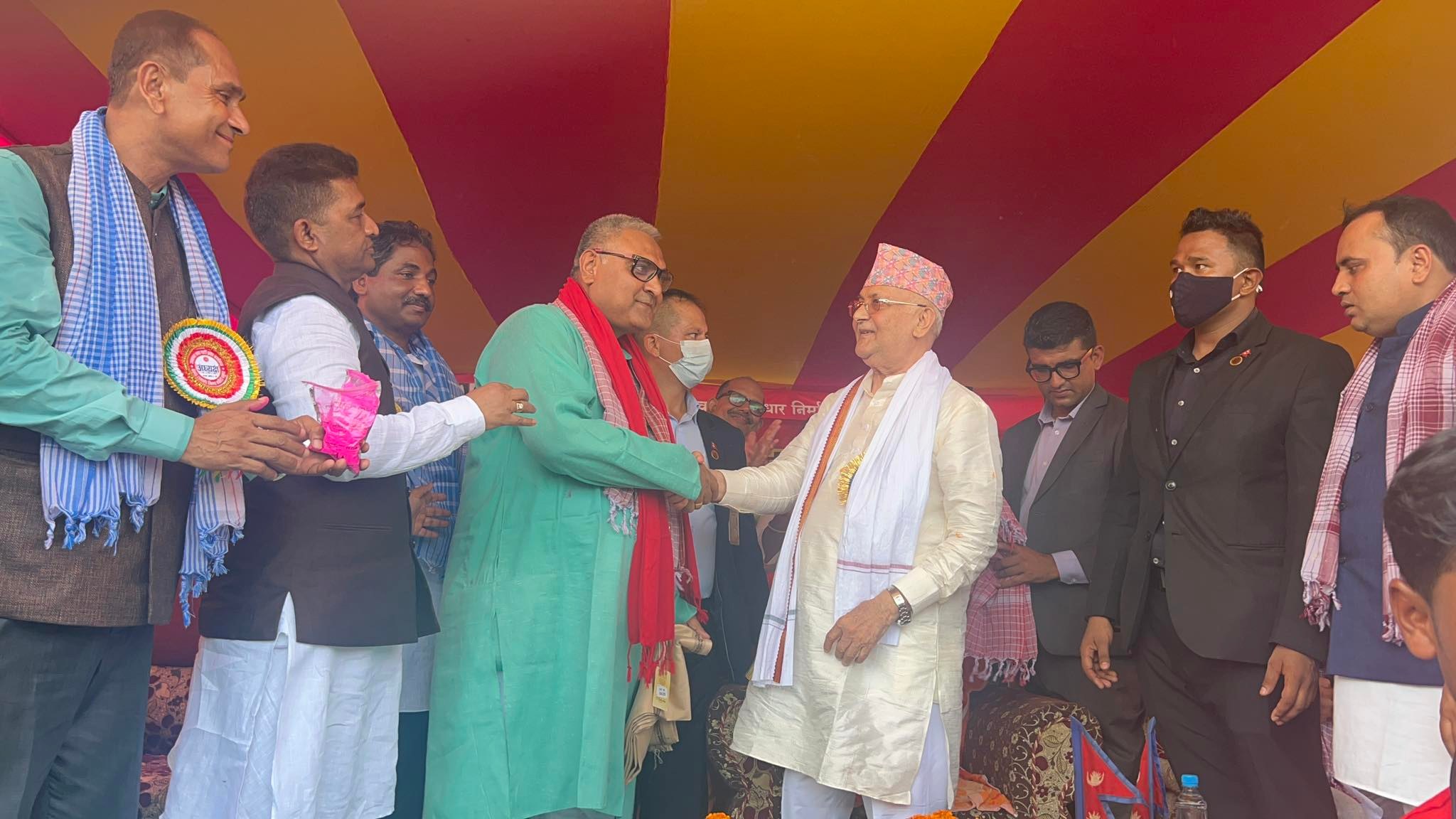 शनिवार धनुषाको विदेह नगरपालिकास्थित तिनकौरिया चोकमा आयोजित जनसभा एवम् बृहत पार्टी प्रवेश कार्यक्रमलाई सम्बोधन गर्दै अध्यक्ष ओलीले यस्तो आरोप लगाएका हुन् ।