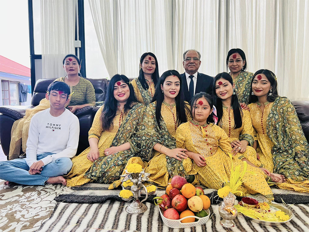 प्रचण्डले छोरीहरू, बुहारी र नातिनातिनालाई टीका लगाइदिएका छन् । प्रचण्ड पुत्री गंगा दाहालले दसैंको टीका लगाएपछिको संयुक्त फोटो सार्वजनिक गरेकी हुन् ।