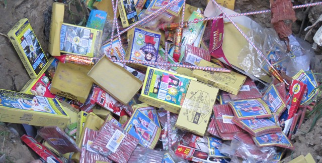 सोमबार प्रहरीले नागिन, फुलझरी, छूरछुरी, आलु बम, रकेट बम, चक्र, आकाशे बमलगायतका विष्फोटक पदार्थ नष्ट गरेको छ ।