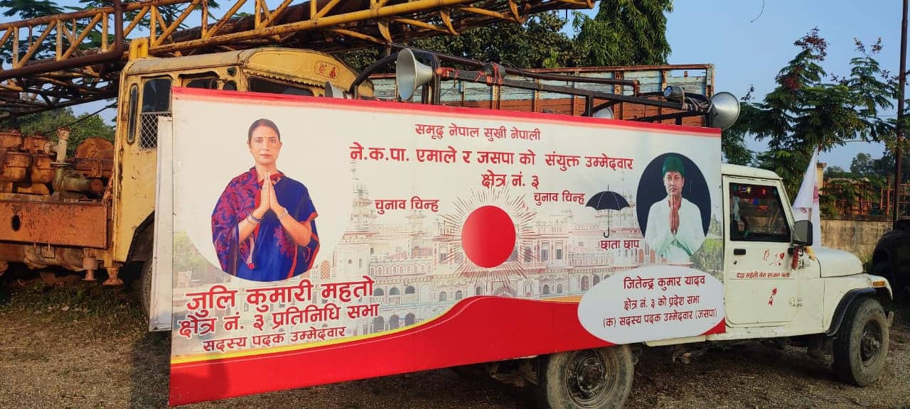 धनुषाको निर्वाचन क्षेत्र नम्बर–३ का लागि नेकपा एमालेबाट प्रतिनिधिसभा सदस्य पदका उम्मेदवार जुलीकुमारी महतो, प्रदेशसभा ३(क) का उम्मेदवार जितेन्द्रकुमार यादव, प्रदेशसभा ३(ख) का उम्मेदवार दिपेन्द्र ठाकुर, धनुषा–३ का सत्तारुढ गठबन्धनको तर्फबाट प्रतिनिधिसभा सदस्य पदका उम्मेदवार अनिल झा, ३(क) का प्रदेशसभा सदस्य पदका उम्मेदवार रामसरोज यादवलगायत अन्य उम्मेदवारहरुले ब्यानर झुण्ड्याएको करिव एक दर्जन सवारी साधन धनुषा प्रहरीले नियन्त्रणमा लिएको हो ।