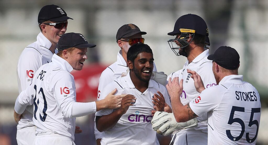 त्यस्तै, रेहान अहमदले दुई, जो रूट, ओली रोबिन्सन र मार्क उडले एक/एक विकेट हात पारे । दोस्रो पारीमा भने पाकिस्तान २१६ रनमै समेटियो । उसका लागि कप्तान बाबर आजमले ५४ र साउद शाकीलले ५३ रन बनाए । बाँकी ब्याटरले भने सन्तोषजनक प्रदर्शन गर्न सकेनन् ।