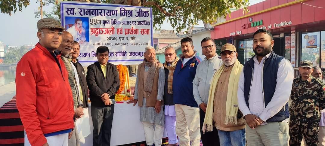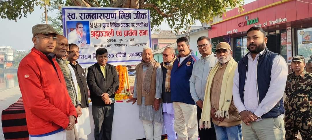 बरुणा कर्ण/ जनकपुरधाम, ६ पुस । विसं २०१५ सालमा प्रथम निर्वाचित सरकारका उद्योगमन्त्री नेपाली काँग्रेसका नेता रामनारायण मिश्रको ५५औं पुण्यतिथि मनाइएको छ ।