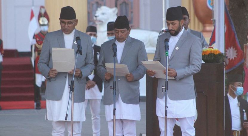 उपप्रधानमन्त्रीमा राष्ट्रिय स्वतन्त्र पार्टीका रवि लामिछाने, नेकपा एमालेका विष्णु पौडेल र माओवादी केन्द्रका नारायणकाजी श्रेष्ठ रहेका छन् । लामिछानेले गृह, पौडेलले अर्थ र श्रेष्ठले भौतिक पूर्वाधार मन्त्रालय सम्हाल्नेछन् ।