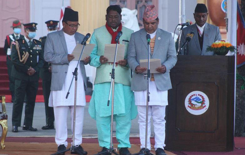 मन्त्रीहरुमा ज्वालाकुमारी साह, दामोदर भण्डारी, राजेन्द्र राई र अब्दुल खान रहेका छन् । उनीहरुको कार्यभार पछि तोकिनेछ ।