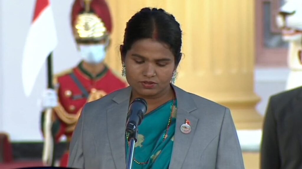 प्रधानमन्त्री प्रचण्डसहित नवनियुक्त ७ जना मन्त्रीले शपथ लिएपछि मात्रै उनी शीतल निवास पुगेकी थिइन् । ढिलागरी पुगेकी उनलाई राष्ट्रपति विद्यादेवी भण्डारीले अन्य मन्त्रीहरूले शपथ लिएपछि एक्लै शपथ गराएकी थिइन् ।
