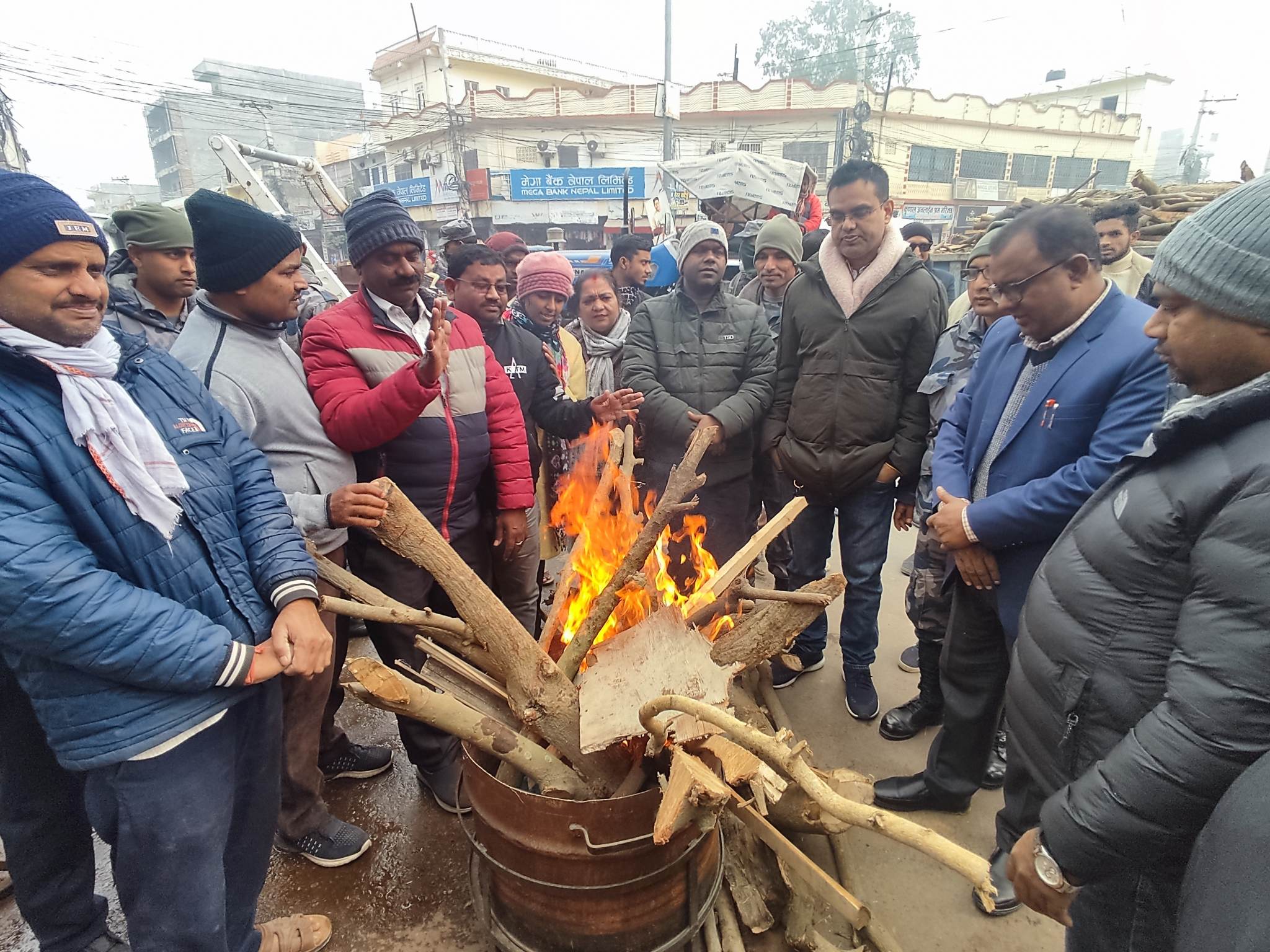 जनकपुरधामका मुख्य चोकहरूमा दाउरा वितरणसहित आगो ताप्ने व्यवस्था मिलाइयो