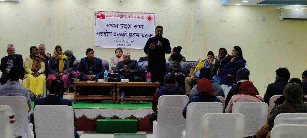 जनकपुरधाम, १९ पुस । नेकपा एमाले मधेस प्रदेशको संसदीय दलको नेता चयन गर्न मंगलबार बसेको बैठकले कुनै निश्कर्ष लगाउन सकेको छैन् । बैठक बुधवार विहान ९ बजे पुनः बस्ने गरि स्थगित भएको हो ।