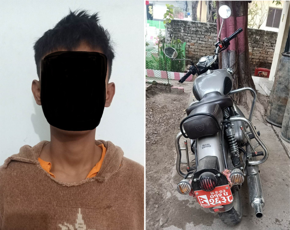 प्रहरीले बाराको कोल्हवी नगरपालिका–७ का २० वर्षीय भुवन चौधरीलाई मोटरसाइकल चोर्दाचोर्दै पक्राउ गरेको हो ।