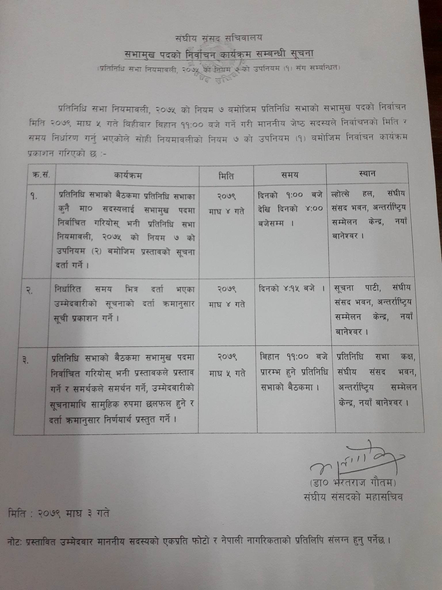 सभामुखको निर्वाचन तालिका सार्वजनिक