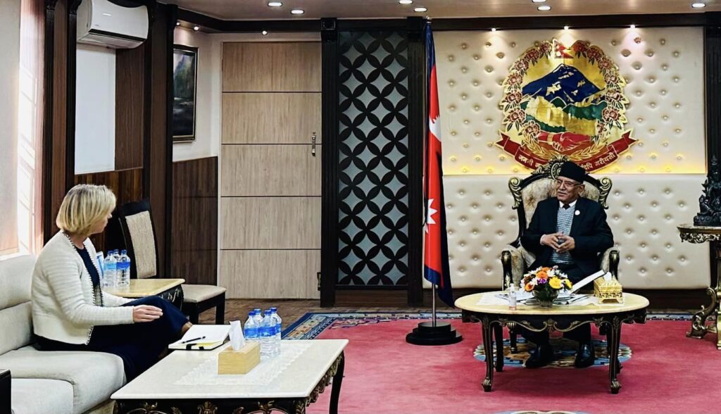 राजदूत पोलिटले बुधबार बिहान प्रधानमन्त्री निवास बालुवाटार पुगेर प्रचण्डसँग शिष्टाचार भेटघाट गरेकी हुन् ।