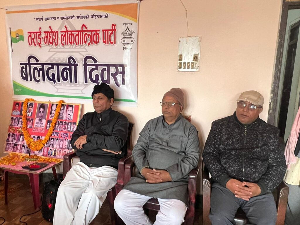 कार्यक्रममा तमलोपाका वरिष्ठ नेता डा. विजयकुमार सिंहले बलिदानी दिवस वास्तवमा प्रेरणाको दिवस रहेको बताए । उनले मधेस आन्दोलनमा देखिएका अवरोह, खडा गरिएका विकृति विरुद्ध खडा भएर परिर्वतनको वाहक बन्नु पर्ने आवश्यकता रहेको जिकिर गरे ।