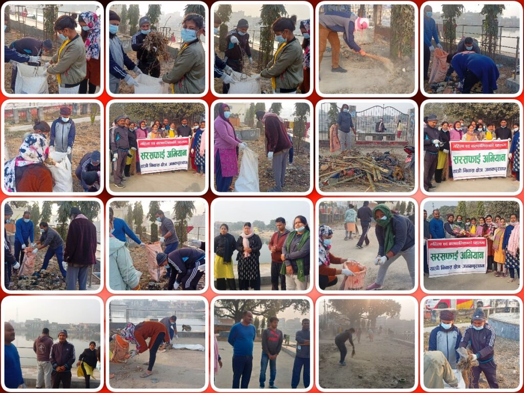 जनकपुरधाम, ११ माघ । सरसफाइ अभियानीहरूले आफ्नो सामाजिक उत्तरदायित्व बोध गर्दै बुधबार फेरि जनकपुरधामस्थित प्रसिद्ध दशरथ तलाउ र आसपासको क्षेत्रमा बृहत् सरसफाइ गरेका छन् ।