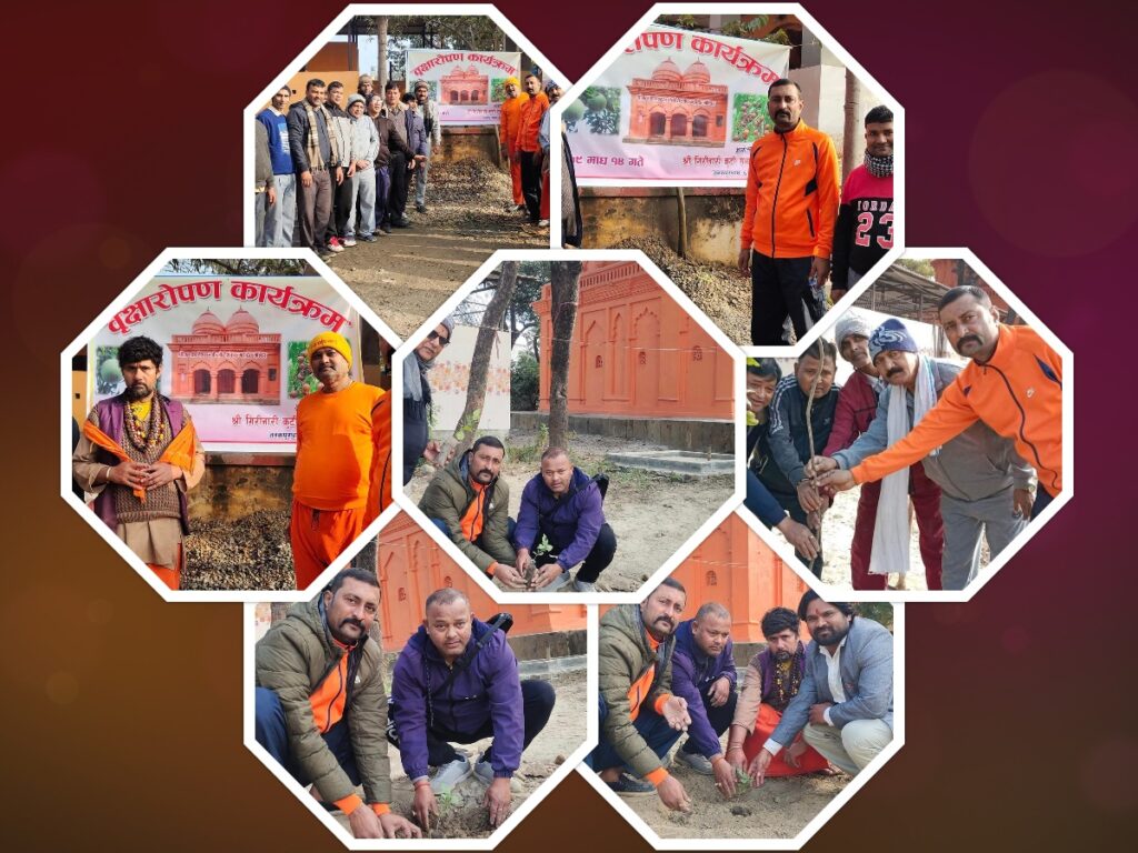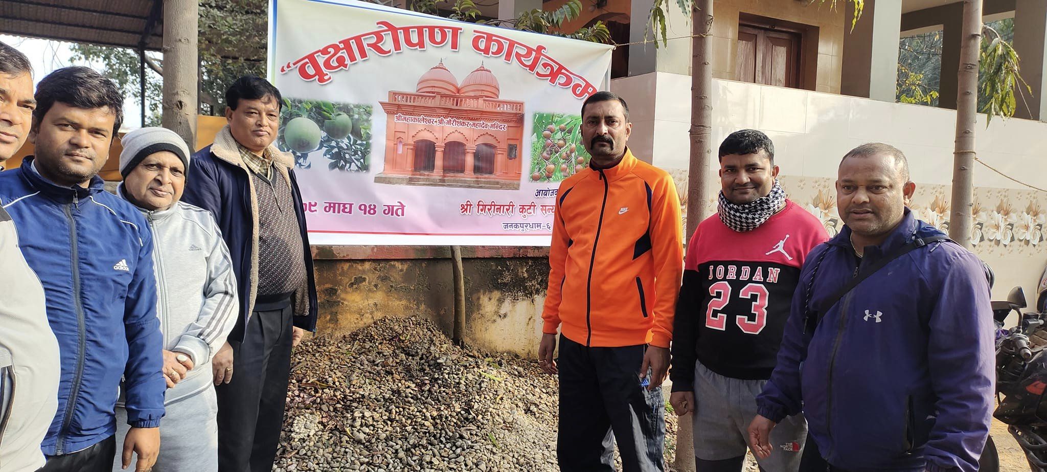 जनकपुरधाम उपमहागरपालिका वडा नम्बर–६ स्थित मन्दिरको प्राङ्गणमा बेल, रुद्राक्ष सहितको वृक्षारोपण गरिएको हो ।