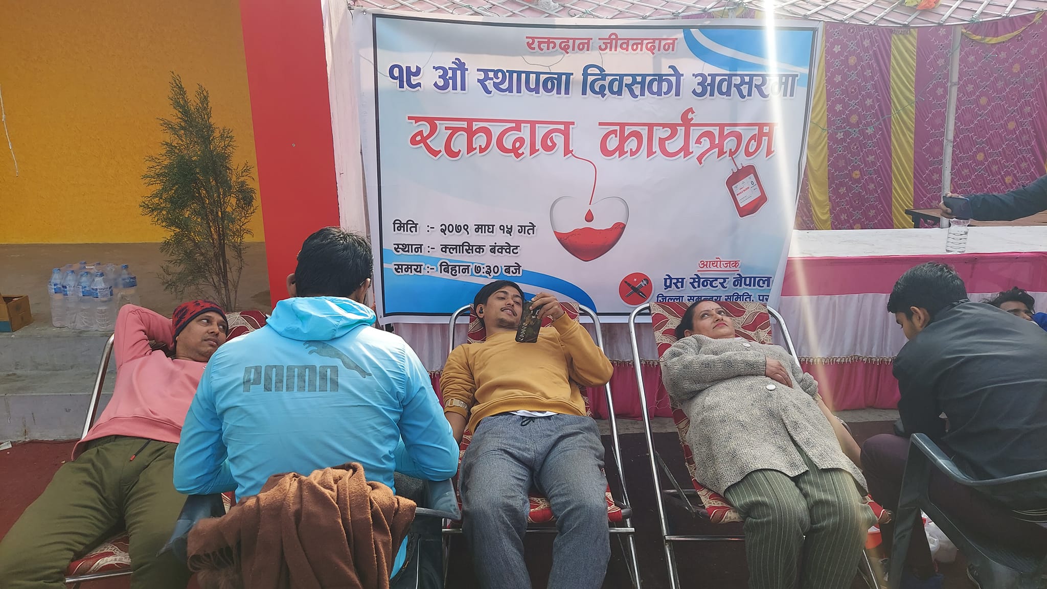 प्रेस सेन्टर नेपाल पर्साले स्थापना दिवसको अवसरमा आयोजना गरेको रक्तदान कार्यक्रममा ५५ जनाले रक्तदान गरेका छन् । त्यस्तै प्रेस सेन्टर नेपाल रौतहटले चियापानको आयोजना गरेको थियो । सो अवसरमा मधेस प्रदेशका प्रदेशसभा सदस्य युवराज भट्टराइले रौतहटको विकासमा सञ्चारजगतको भूमिका महत्वपूर्ण हुने बताए ।