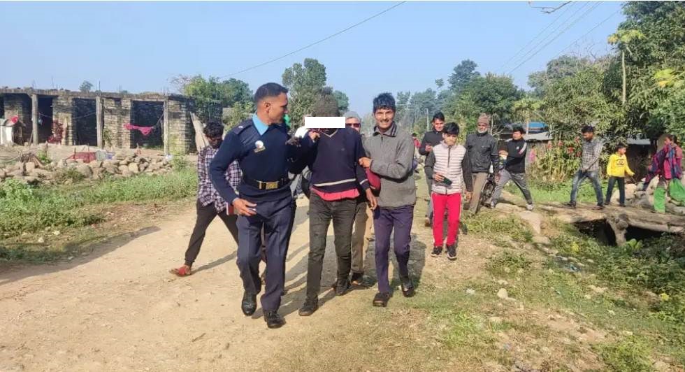 हत्या आरोपमा थारूलाई इलाका प्रहरी कार्यालय लम्कीले पक्राउ गरिसकेको छ । उनी घरभन्दा करिब ८ किलोमिटर टाढा लुकेर बसेको समयमा पक्राउ परेको इलाका प्रहरी कार्यालय लम्कीका प्रमुख प्रहरी निरीक्षक शंकर खड्काले जानकारी दिए ।