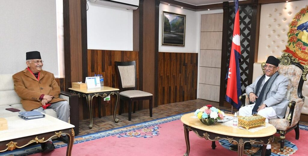 प्रधानमन्त्री प्रचण्ड र अध्यक्ष ओलीबीच भेटवार्ता