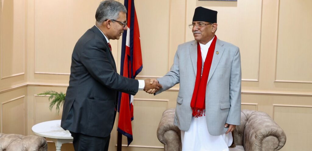 प्रधानमन्त्री प्रचण्ड र राजदूत चौधरीबिच शिष्टाचार भेटवार्ता