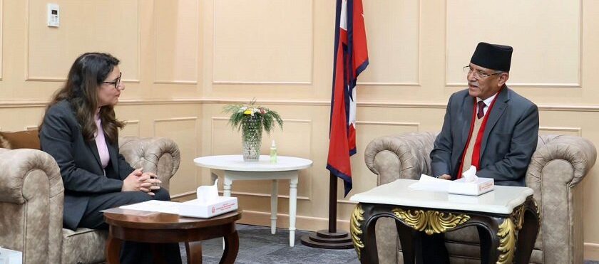आइतबार सिंहदरबारस्थित प्रधानमन्त्रीको कार्यालयमा उनले प्रधानमन्त्री प्रचण्डसँग शिष्टाचार भेटवार्ता गरेकी हुन् ।