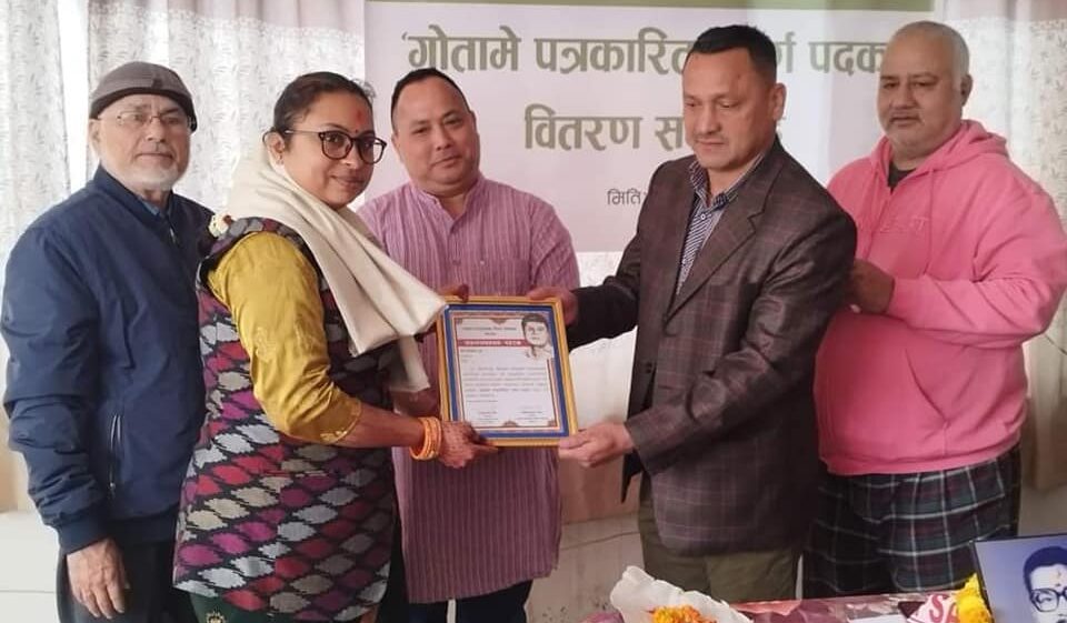 ‘गोतामे पत्रकारिता स्वर्ण पदक’ अध्यक्ष मनिका झालाई प्रदान
