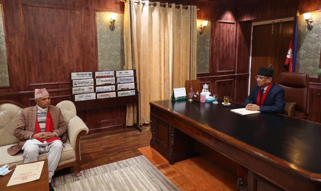 प्रधानमन्त्री प्रचण्ड र मुख्यमन्त्री अधिकारीबीच भेटवार्ता