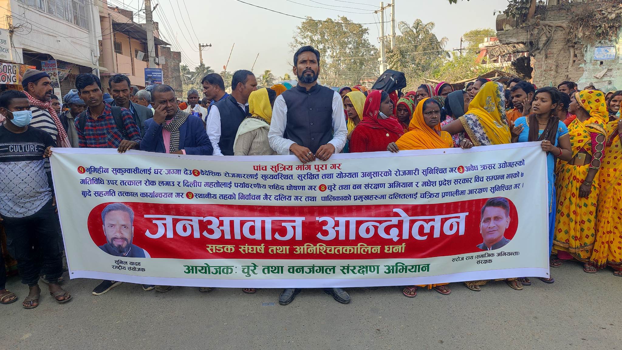 विभिन्न ५ सुत्रिय माग राख्दै चुरे अभियानीहरू अनिश्चितकालिन धर्नामा