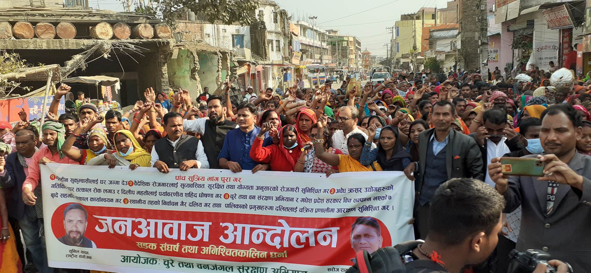 जनकपुरधाम, ११ फागुन । चुरे तथा वन जङ्गल संरक्षण अभियानीहरू विभिन्न ५ सुत्रिय माग राख्दै आजदेखि अनिश्चितकालिन धर्ना सुरु गरेका छन् ।