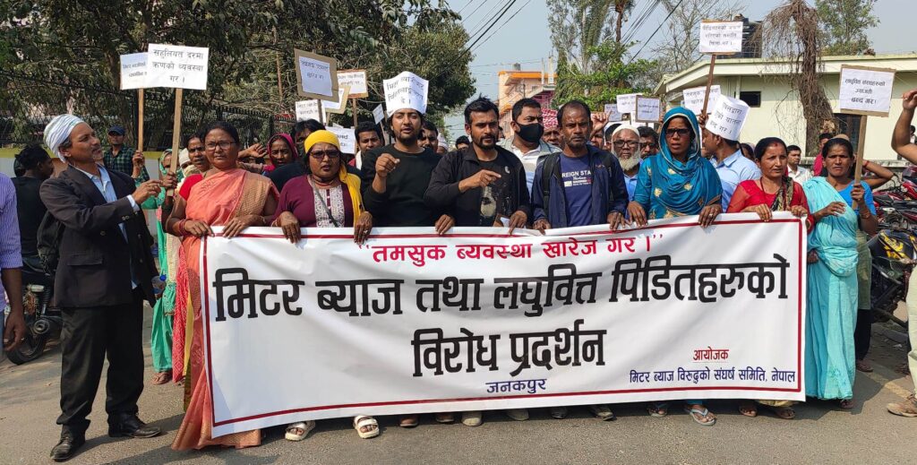जनकपुरधाममा मिटरब्याजी र लघुवित्त वित्तीय संस्थाविरुद्ध पीडितहरू आन्दोलित