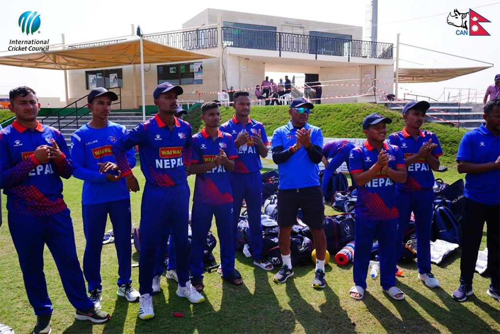 यूएईको अजमानमा टस हारेर ब्याटिङ गरेको नेपालले देव खनालको अर्धशतक सहयोगमा १९१ रनको योगफल बनाएको थियो । नेपाल ४८.५ ओभरमा अलआउट भएको हो ।