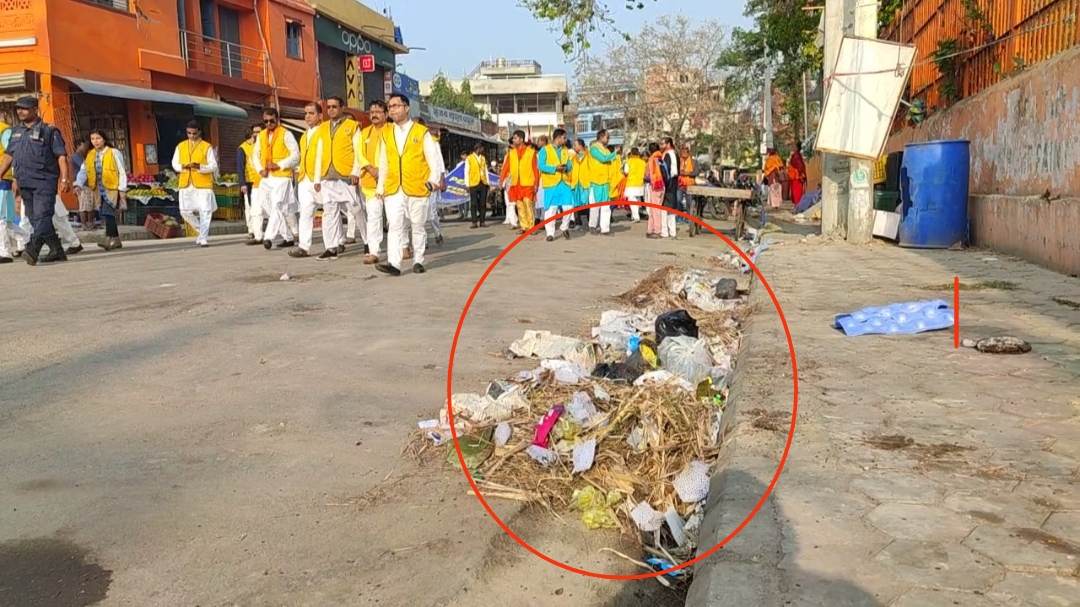 प्रभातफेरिमा सहभागीहरू मुख्य बजारकै सडकमा बिचबाट हिंडिरहँदा सडकको छेउमा चारैतिर फोहोरको थुप्रो जताततै फालिएको थियो । बजारको पसलहरूबाट निस्केका फोहोरजन्य सामग्री सडक छेउमै फालिएका थिए । प्रभातफेरिमा सहभागी हुन देशका अन्य ठाउँबाट जनकपुरधाम आएका सहभागीहरू नाक थुनेर जसोतसो हिंडिरहेको देखियो । सबैले भनिरहेका थिए, ‘छि..! कस्तो दुर्गन्धित छ हौ जनकपुरको वातावरण..! उपमहानगरपालिका सुतेको छ कि क्या हो ?’