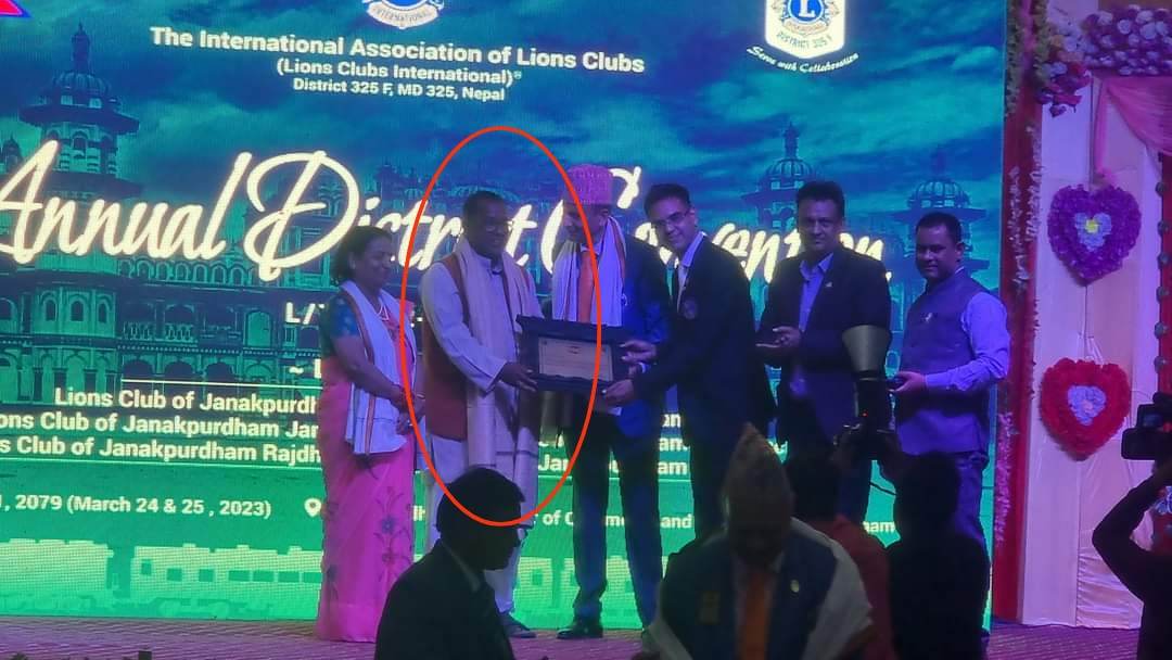 जनकपुरधाम, ११ चैत । शुक्रबार जनकपुरधामस्थित उद्योग वाणिज्य संघको सभाकक्षमा लायन्स क्लव ३२५ ‘एफ’को प्रथम जिल्लास्तरीय वार्षिक सभाको पहिलो दिनको उद्घाटन सत्र चलिरहँदा विभिन ओहोदाका विशिष्ट व्यक्तिहरू सहभागी थिए । कार्यक्रममा पूर्वराष्ट्रपति डा. रामवरण यादव, प्रतिनिधिसभा सदस्य जुलीकुमारी महतो, प्रदेशसभा सदस्य दिपेन्द्र ठाकुर, जनकपुरधाम उपमहानगरपालिकाका नगरप्रमुख मनोजकुमार साह, उद्योगपति एवं लायन राजेन्द्र खेतानलगायतका अन्य धेरै विशिष्ट व्यक्तिहरू सहभागी थिए । कार्यक्रममा देशका विभिन्न जिल्लाबाट ठूलो संख्यामा पुगेका लायनहरूको सहभागिताले पनि बाक्लै उपस्थिती देखिन्थ्यो । माहौल नै अर्कै थियो ।
