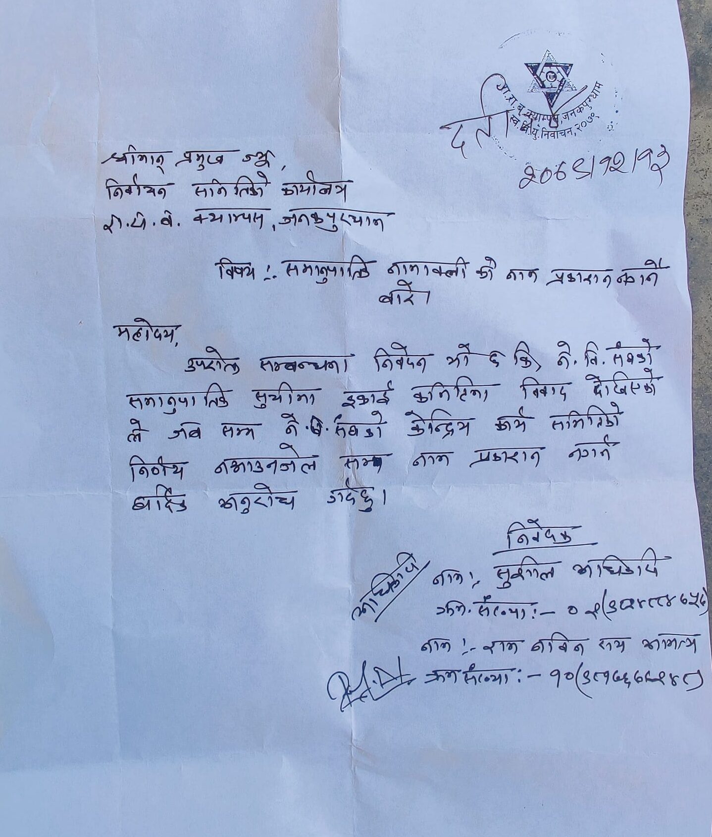 यसैबिच, उनीहरुले निर्वाचन समिति प्रमुख रेमन्त मोरबैतालाई समानुपातिक नामावलीको नाम प्रकाशन नगर्न आग्रह गर्दै निवेदनसमेत बुझाएका छन् ।