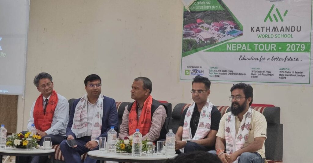 ‘राम्रो भविष्यका लागि शिक्षा’ मूल नाराका साथ काठमाडौं वर्ल्ड स्कुलले सुरु गरेको ‘वर्ल्ड स्कुलको नेपाल टुर’ले जनकपुरधाममा बृहत शैक्षिक कार्यक्रमको आयोजना गरेको हो ।