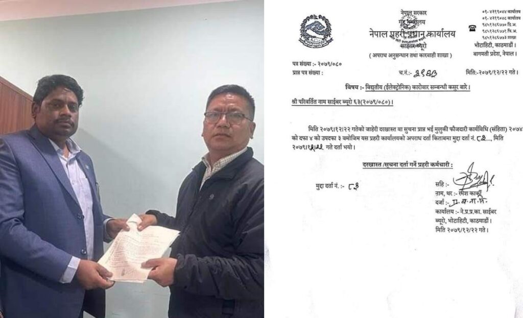 पूर्वमन्त्री खानले प्रहरी प्रधान कार्यालय साईबर ब्यूरो अपराध अनुसन्धान तथा कारबाही शाखामा विद्युतीय कारोबार सम्बन्धी कसुरबारे मुद्दा दर्ता गराएका हुन् ।