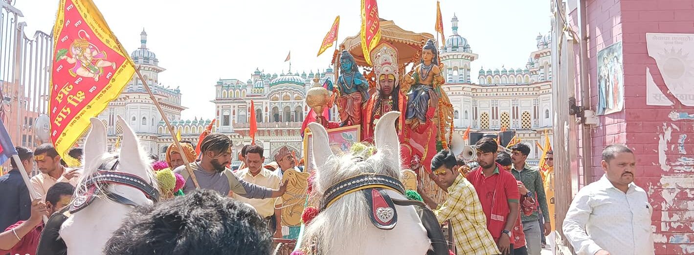 जनकपुरधाम, २३ चैत । हनुमान जन्मोत्सवको अवसरमा जनकपुरधाममा विशाल शोभा यात्रा निकालिएको छ । शोभा यात्राका क्रममा जनकपुरधामको नगर परिक्रमा गरिएको छ ।