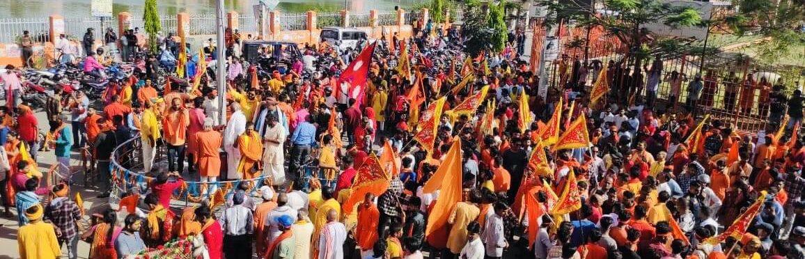 जनकपुरधाममा निकालिएको विशाल शोभा यात्रामा हिन्दु राज्यको माग गुञ्जिएको छ । समस्त हिन्दु समाजको आयोजनामा हनुमान जन्मोत्सवको अवसर पारेर निकालिएको शोभा यात्रामा नेपाललाई हिन्दु राज्य कायम गर्नुपर्ने माग गरिएको हो ।