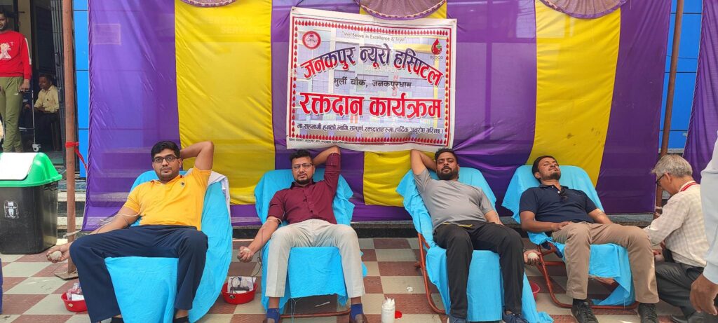 जनकपुरधाम, ४ बैशाख । जनकपुरधामस्थित जनकपुर न्यूरो अस्पतालले रक्तदान कार्यक्रमको आयोजना गरेको छ ।
