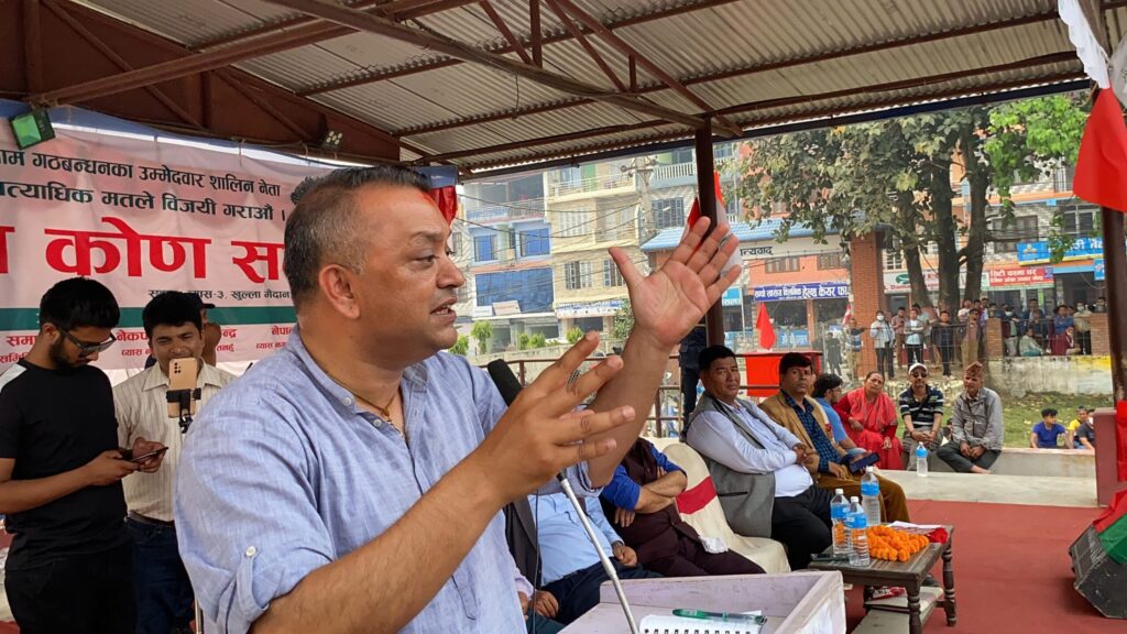 सत्ता गठबन्धनसम्बद्ध दलहरूले तनहुँको दमौलीमा आयोजना गरेको चुनावी सभालाई सम्बोधन गर्दै महामन्त्री थापाले गठबन्धन सरकारलाई पाँच वर्ष टिकाएर जानसके जनतामा सकारात्मक सन्देश प्रवाह हुने बताए ।