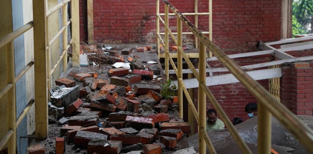 वीर अस्पतालको पुरानो भवनको छतको पर्खाल खस्दा चारजना घाइते