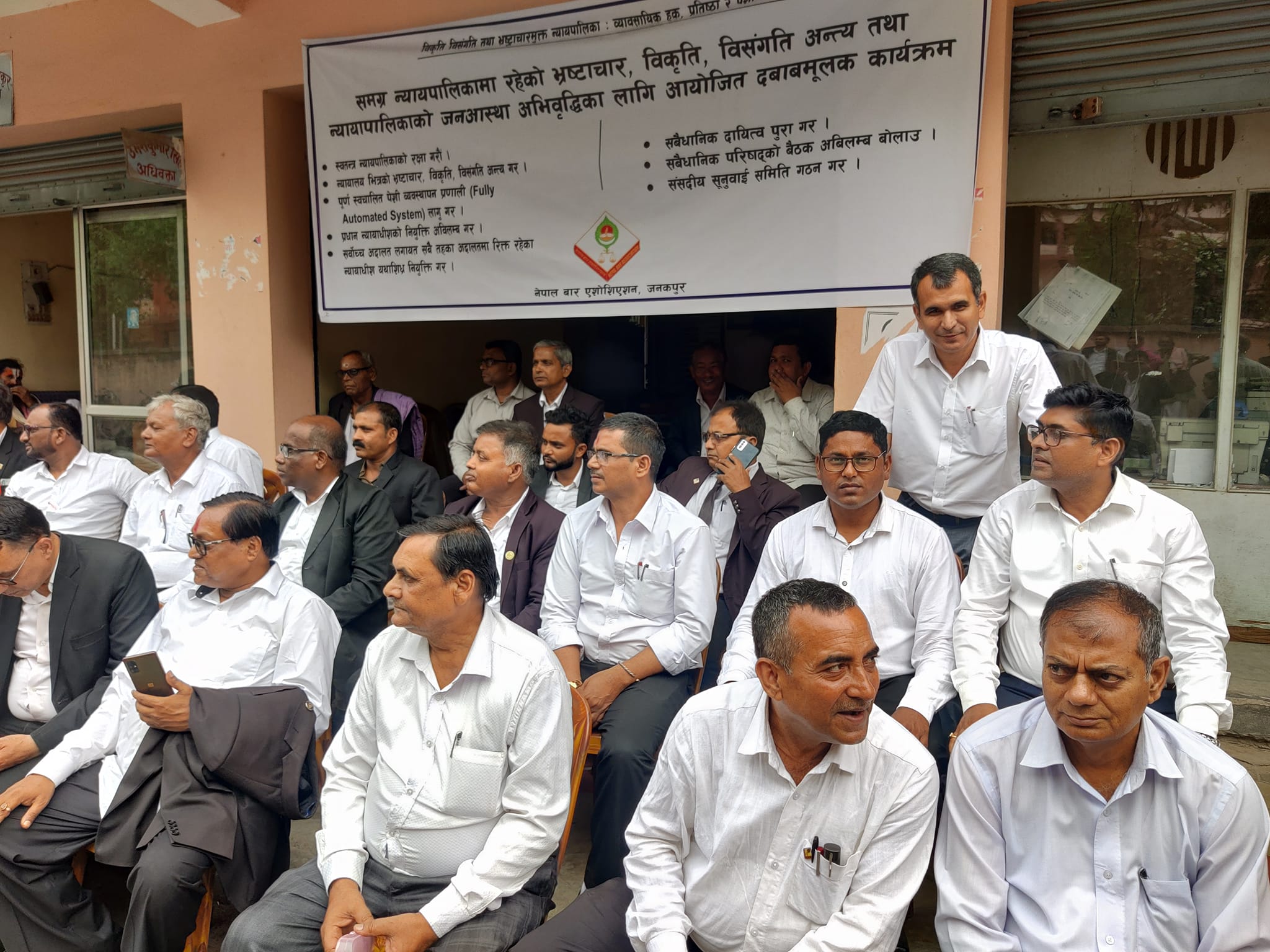 केन्द्रीय बारको आग्रह अनुसार अहिले विभिन्न जिल्लामा आन्दोलन सुरु गरिएको र त्यसै क्रममा नेपाल बार एशोसिएशन जनकपुरले पनि आइतबारदेखि समग्र न्यायपालिकाको सुधारका लागि दबाबमुलक धर्ना कार्यक्रम प्रारम्भ गरेको कानून व्यवसायी विपिन झाले बताए ।