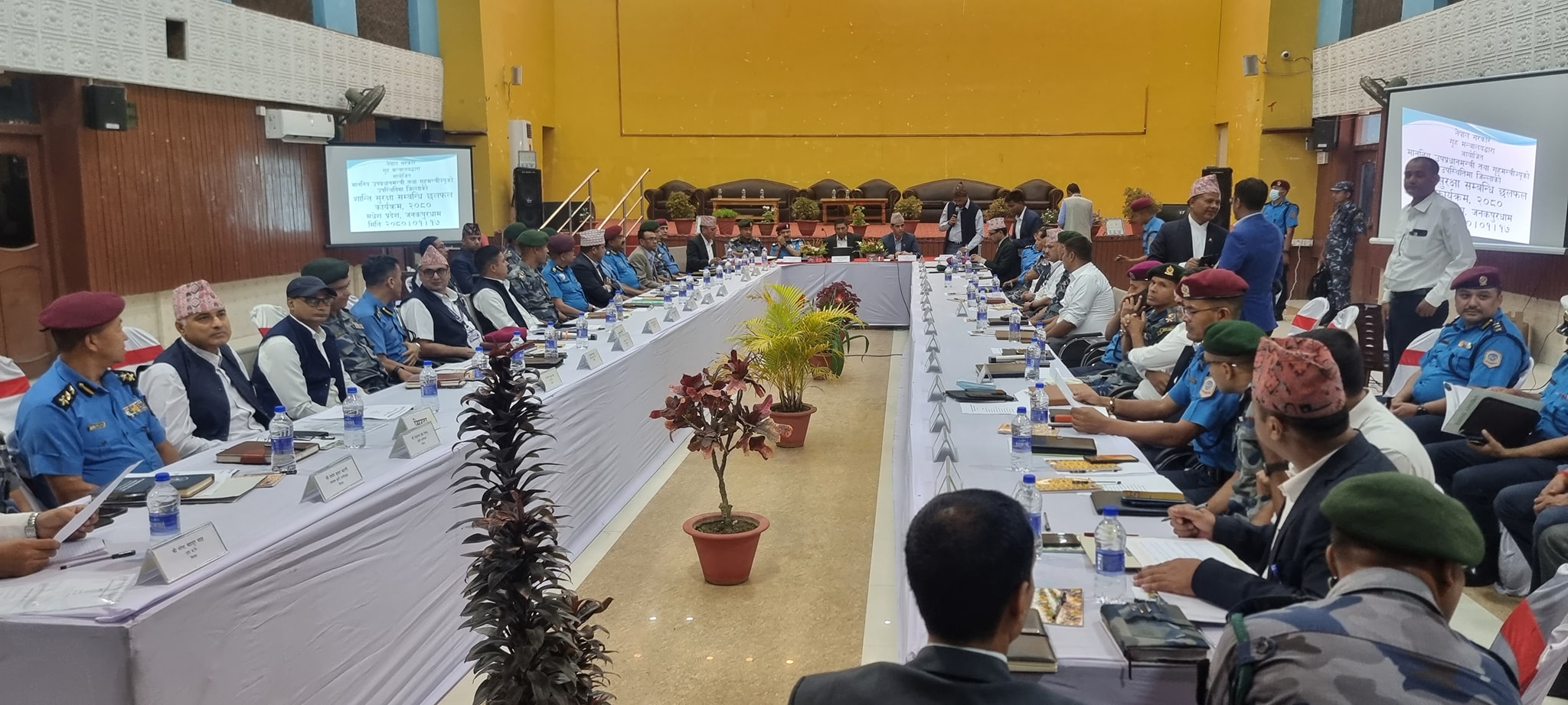 सुरक्षा समितिको बैठकमा गृहमन्त्री, नेपाल प्रहरी, सशस्त्र प्रहरीका महानिरीक्षक, मधेस प्रदेशका डिआइजी, प्रदेशको आठवटै जिल्लाका प्रमुख जिल्ला अधिकारी, नेपाल प्रहरी, सशस्त्र प्रहरी, अनुसन्धानका प्रमुख लगायत प्रहरी प्रशासनको उपस्थिति रहेको थियो ।