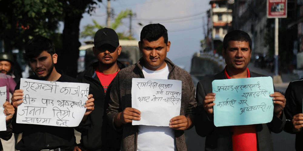 भ्रष्टाचारीलाई कारबाही गर्न माग गर्दै युवाहरूले काठमाडौंमा गरे प्रदर्शन