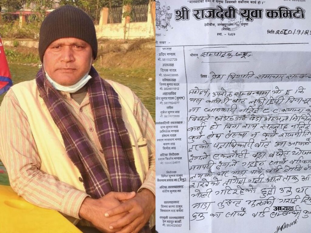 जनकपुरधाम उपमहानगरपालिका वडा नम्बर–१० का वडाध्यक्ष मिथिलेश कर्णले वडा कार्यालय सञ्चालनमा रहेको घरको भाडा माग्दा उल्टै धाकधम्की दिने गरेको आरोप लगाइएको हो ।