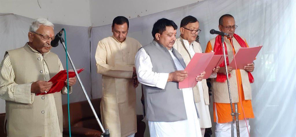 प्रदेश प्रमुख हरिशंकर मिश्रले नवनियुक्त तिनैजना मन्त्रीलाई नेपालको संविधानको धारा १६८ को उपधारा (९) बमोजिम पद तथा गोपनीयताको शपथ ग्रहण गराएका छन् ।